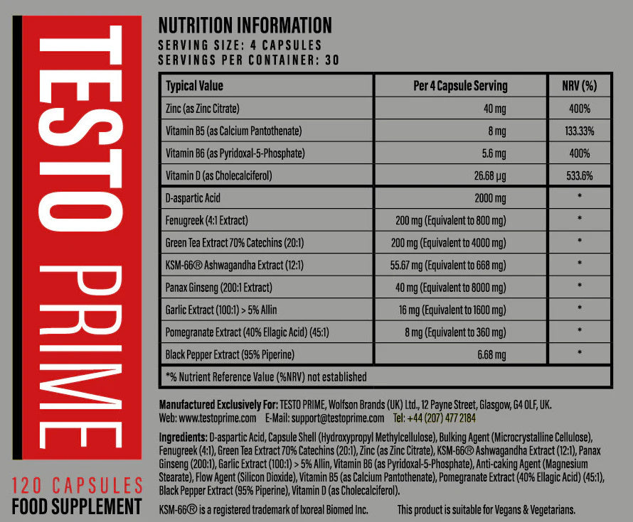 Non ! TestoPrime n’utilise que des ingrédients naturels, cultivés aux quatre coins du monde, ce qui le rend complètement sûr, sans effets secondaires. En plus, il ne contient pas de noix, de produits laitiers, de céréales, de gluten, d’agents de remplissage, d’additifs, ni de colorants.